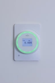 Setra Lite is designed to be visible from a distance and as intuitive as a traffic light, glowing red or green depending on the room pressurization status. Underneath the faceplate are three buttons pressure alarm threshold used for configuration. The screen is fully configurable on the device, including: